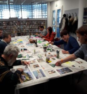 V Knjižnici Kočevje z njimi uspešno sodelujemo že vrsto let. Dobivamo se na štirinajst dni ter se v prijetnem vzdušju pogovarjamo o različnih temah, ki jih pripravimo zanje. Včasih so povezane s prazniki, pomembnimi obletnicami, svetovnimi dogodki ali pa so vzete iz čisto vsakdanjega življenja. Tako smo se denimo pogovarjali o različnih običajih, svetovnih dnevih, pomembnih pesnikih in pisateljih, pa tudi o povsem vsakdanjih temah, kot sta denimo kava in slovenska posebnost – potica. Izvedli smo tudi delavnico izdelovanja novoletnih voščilnic.